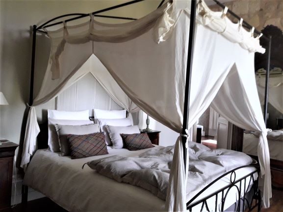 Grand lit double à baldaquin et 2 lits simples.